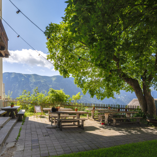 Das Haus hat eine grosse Sonnenterrasse, die hundertjährigen Bäume spenden im Sommer natürlichen Schatten und lassen die wärmende Sonne im Winter durch.