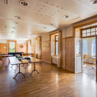 In unserem grossen Saal mit altem Parkett und Arvenholzwänden haben wir und Sie viele Möglichkeiten. Wählen Sie den Saal für grosse Anlässe, für eine Aufführung oder um mit Familie und Freunden zu dinieren. Immer haben wir eine Kinderspielecke mit spannendem Spielzeug und Büchern, lassen sie die Kinder tun und entspannen sie sich selbst!